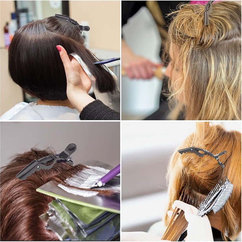- Double hinged hair clips-5 professional alligator hair clips adopt a unique and flexible double hinge clip design to keep your hair in place without leaving dents, damaging it or tangling. These great distribution clips make styling and hair drying easier.