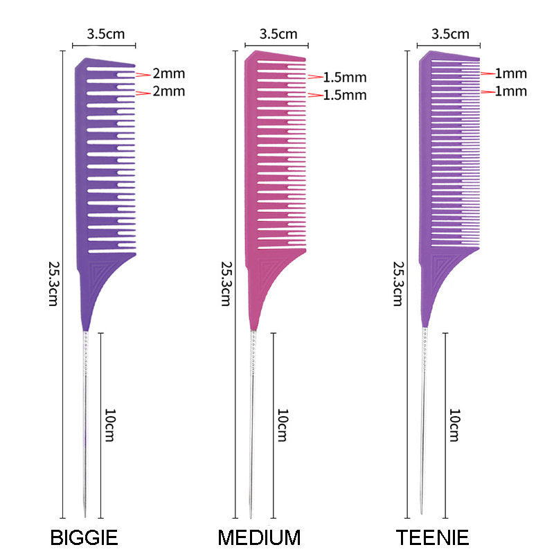 Beakey 3 Pcs Highlighting Combs 3 Sizes with Rat Tail Perfect for Salon-Set5