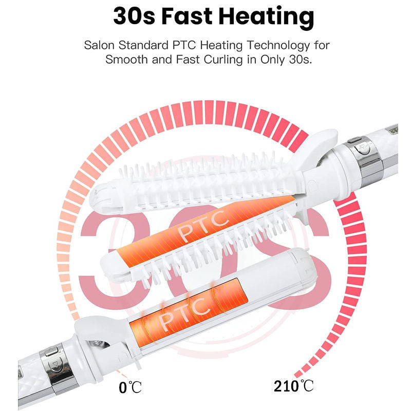 - Smart Auto Rotating and Save Styling Time : Easy-to-use curling iron can rotate in both directions automatically. Touch one button to get auto rolls up, and creates perfect beach wave curls that last all day.
