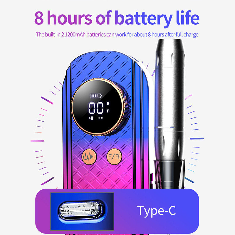 - Rechargeable and Long-lasting: This nail drill can run continuously for up to 8 hours on a full charge, making it perfect for extended use. The control box is equipped with an LCD display, gear knob, and forward/reverse buttons, ensuring effective nail shaping and removal with low power consumption.