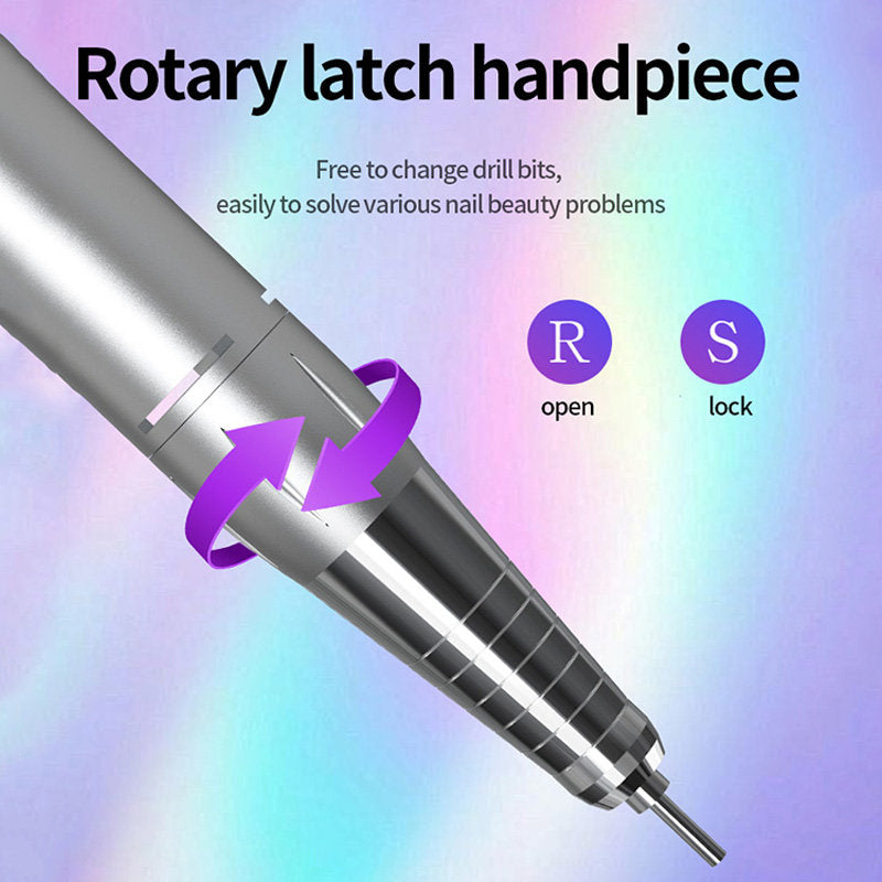 - The package includes: nail drill machine, nail drill pen, connecting line, pen holder, 6 X drill bits, 6 X sanding bands, Type-C data cable