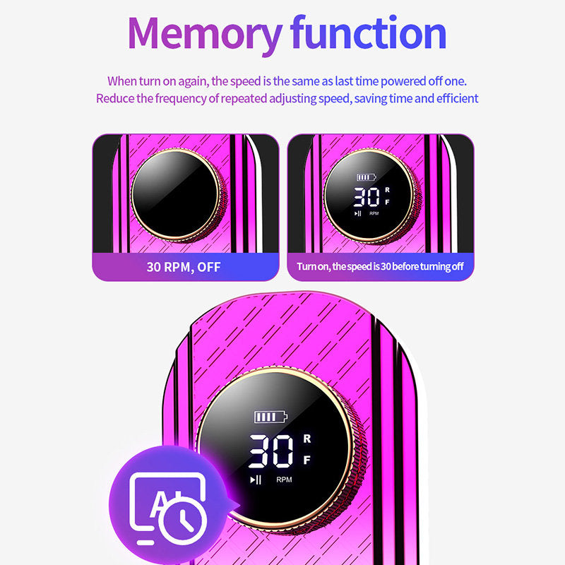 - Smart Speed Memory Function: Upon restart, the drill automatically resumes the last used speed, saving you time and hassle. This convenient feature enhances your workflow, making it ideal for both home manicures and salon environments.