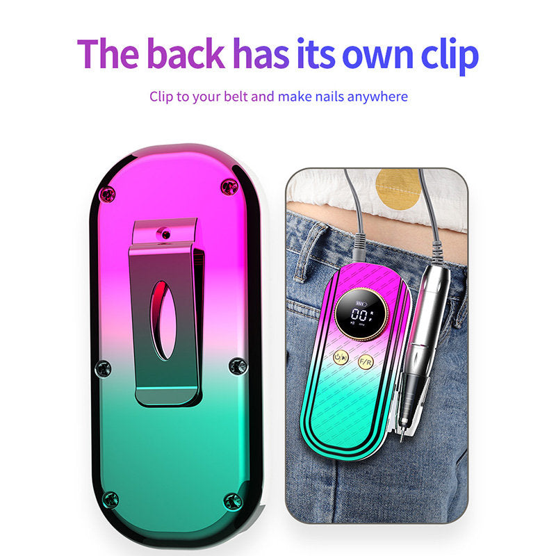 - Portable Nail Drill: The electric nail file features a lightweight and ergonomic design, allowing for easy one-handed operation. Its integrated clip enables you to attach it to your belt, providing hands-free convenience while traveling or on the go.