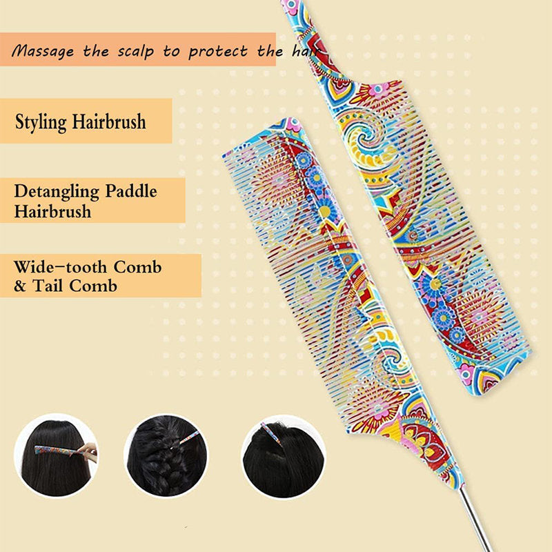 - 6 Pcs hair brush and comb set: This comb set is designed with exquisite and beautiful retro printing, which is not only beautiful and elegant, but also feels comfortable. Suitable for wet, dry, long, short, thick, curly and straight hair. The perfect detangler hair brush set for women, men, friends, children or family members of all hair types.