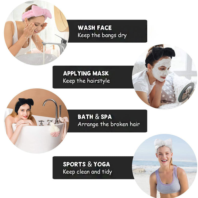 - Towel headband: The top of the headband has a bow shape, which makes you extra sweet and cute.
