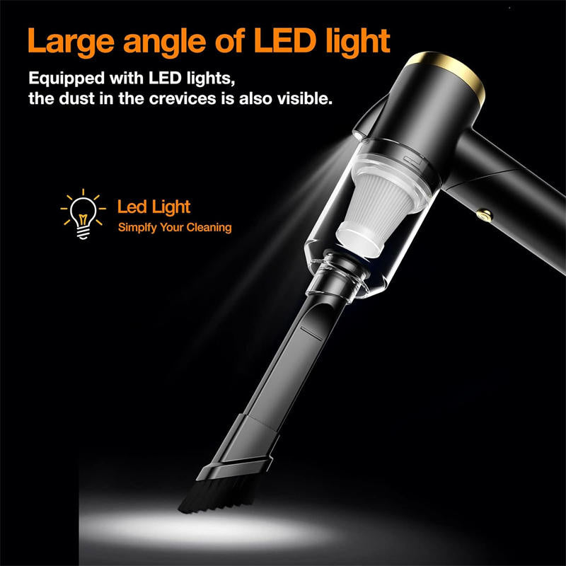 - Wide Angle LED Light: The built-in wide angle LED light can provide a good view when you are cleaning any dark corner, such as the bottom of car seats£¬clean more efficiently and comprehensively.