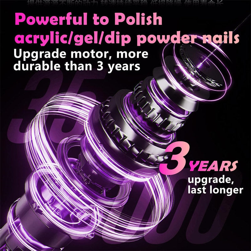 - Adjustable Speed & Direction: Featuring an adjustable speed control up to 35000 RPM and forward/reverse direction, this electric nail file machine offers precision and control for all nail care tasks. Suitable for right and left-handed users