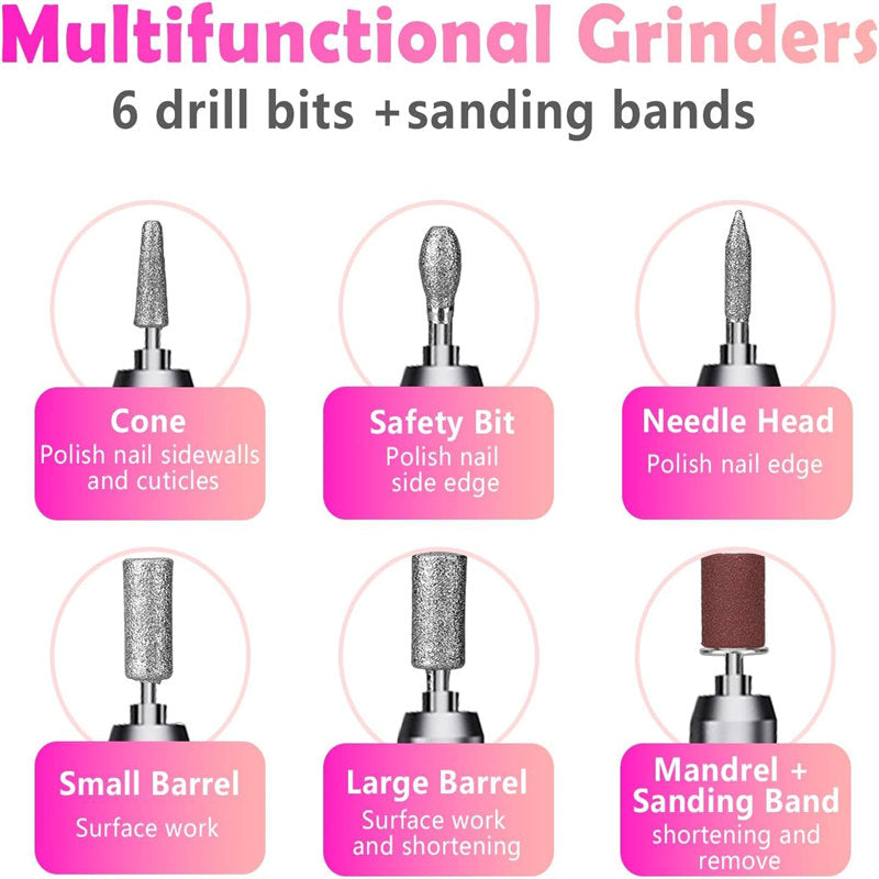 - Versatile Nail Drill Kit: This portable nail drill professional is designed for acrylic, gel nails, and natural nails. It comes with multiple drill bits and sanding bands to meet various manicure and pedicure needs, perfect for both home and salon use