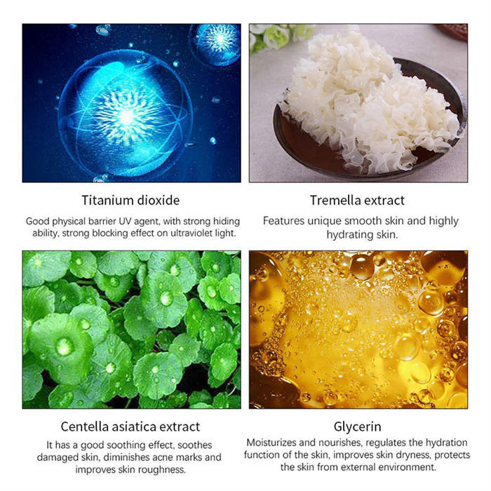 - Natural plant formula: Contains a variety of natural skin care ingredients, such as Centella asiatica extract, Tremella extract, etc. It also nourishes the skin while applying makeup.