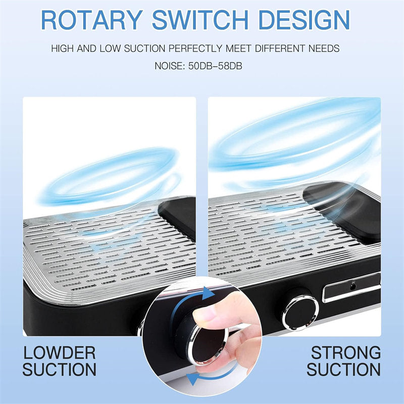 - Low Noise : With a high-quality suction motor, this nail dust vacuum machine will keep in low noise, After rigorous testing, the maximum sound is 58db. It makes you more comfortable while filing.Easy to switch ,Create a minimalist world.