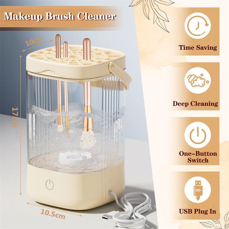 Beakey Portable Electric Makeup Brush Cleaner Automatic Spinning Cosmetic Brushes Washer-Beige