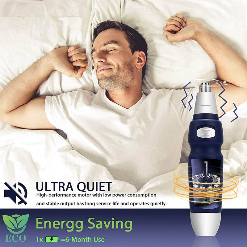 - The high-performance motor has low power consumption, stable output, and the power saving effect is increased by 5%. One AA battery (not included in the scope of supply) can run for more than 6 months (2 minutes at a time). long lasting. This men's ear and nose hair trimmer is easy to carry, very suitable for travel and business trips.