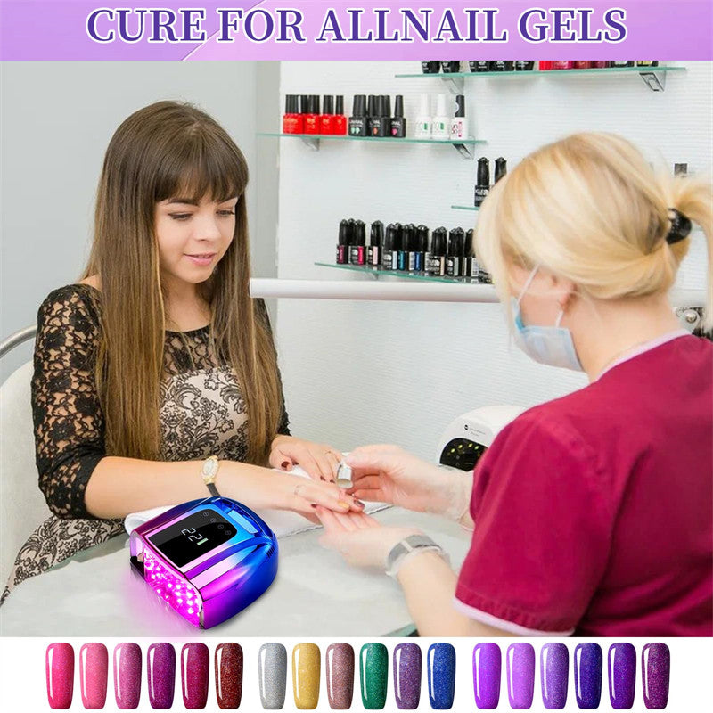 - Smart Sensor and 4-Speed Timer: Smart sensor allows without manual operations. Hands/feet in, lamp on. Hands/feet out, lamp off. Our professional nail lamp provides 10S / 30S / 60S / 90S flexible drying options and the time will be displayed on the large LCD screen. The LED screen can also display the remaining power to let you know when you need to charge.